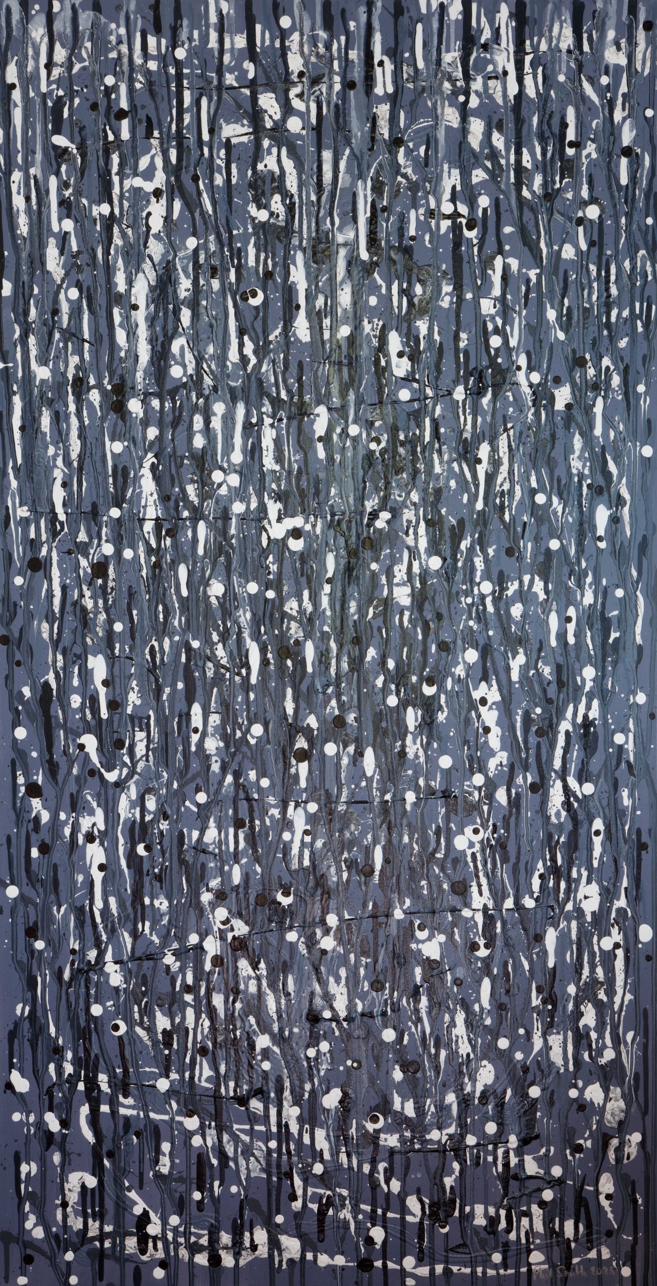 Monochrome Abstract 4 was painted using a combination of brushes (background) then adding paint by pouring and dripping and using gravity to achieve the desired effect. paint was also added by flicking.