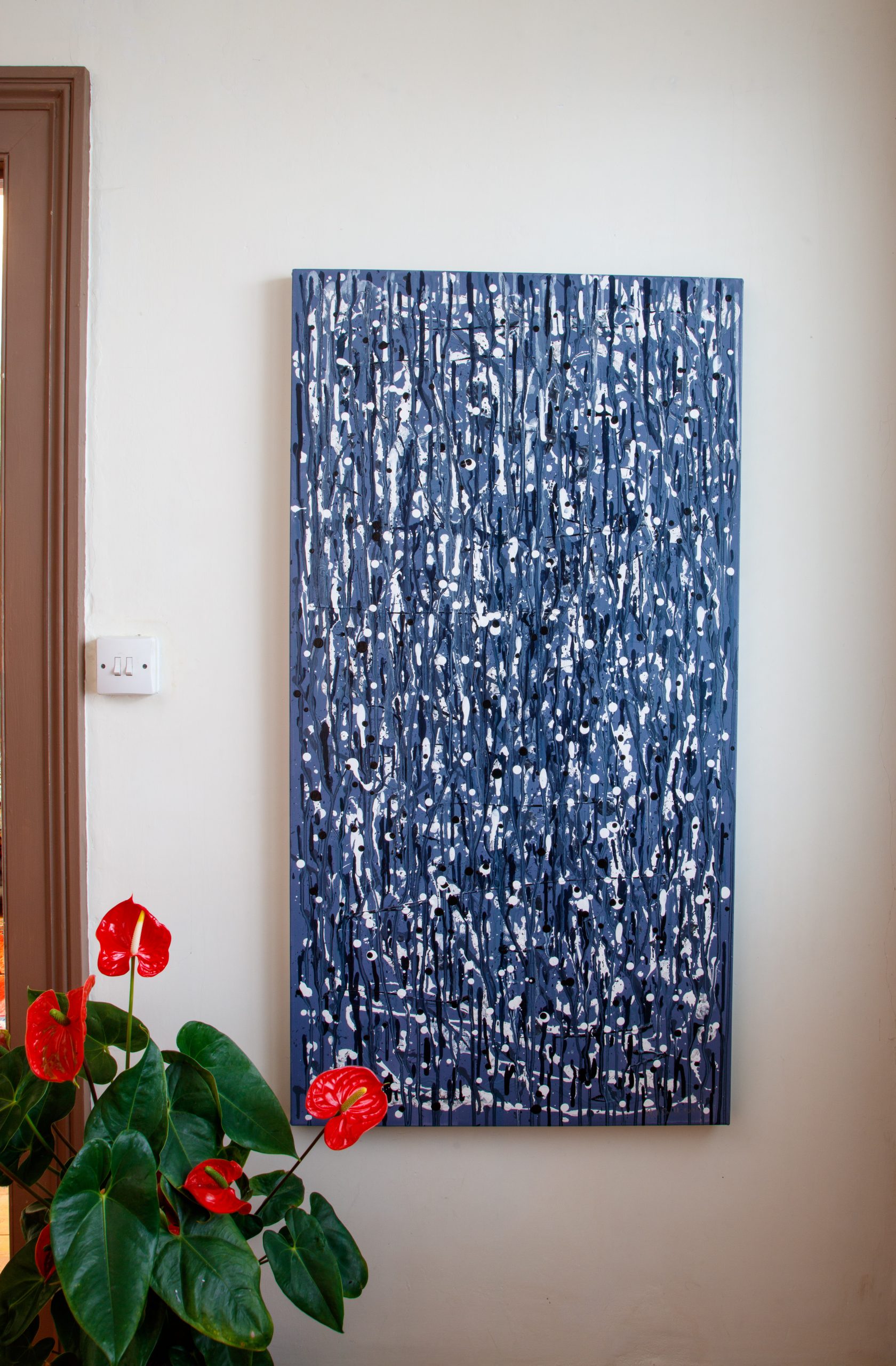 Most of my artworks are very colourful, but I also love doing monochromes like this one. In this painting you can get lost in the intricate details (see the photos showing details). Monochrome Abstract 4 is a large piece which would suit anything from a modern city apartment to a period home. It looks great in our Victorian home.